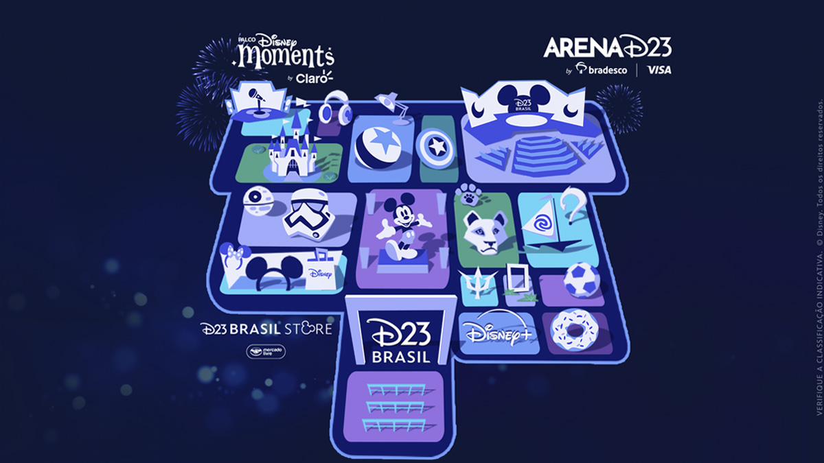 Palcos Mágicos: A Arena D23 será o palco principal para os maiores anúncios e painéis, enquanto o Palco Disney Moments nos proporcionará shows e interações especiais.