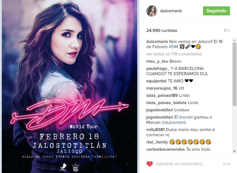 É isso mesmo, a diva anunciou um show da “DM World Tour” para 18 de fevereiro que é exatamente daqui à um mês, o que nos faz pensar que nesse meio tempo é bem provável que o terceiro álbum de Dulce seja conhecido por todos nós. Vale lembrar que a cantora não lança algo novo desde o lançamento de “Al Otro Lado De La Lluvia”, música que integrará a tracklist do DM3.